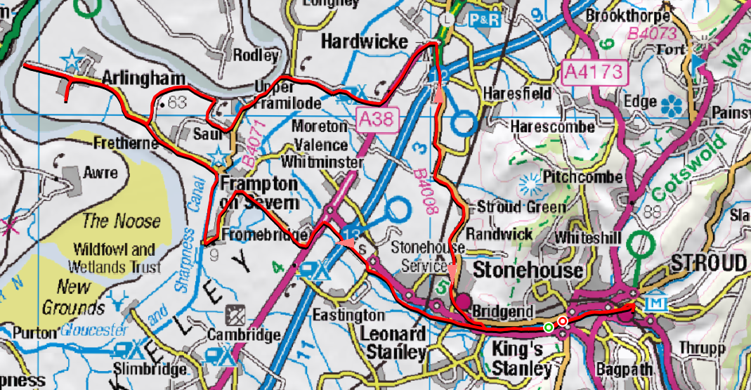 Instead of heading into the Cotswolds from Ebley (nr Stroud), today I ventured west down to Frampton on Severn, taking in a section of the Gloucester and Sharpness Canal towpath before venturing further out to Arlingham (‘Morning Coffee Stop’) from where there were great views to be had of the Forest of Dean.