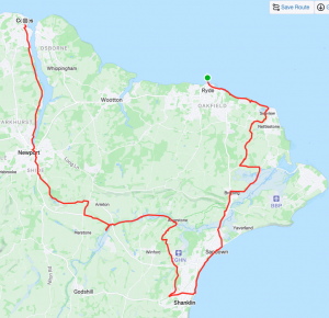After Shanklin Station we joined the sustrans route that took us North to the Newport road, then north past the airport and up to the Alverstone road on an off-road section and another section in a northeasterly direction to take us onto the Sandown-Newport cycleway.