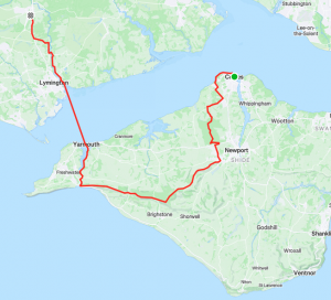 Fastcat across to Ryde and a short ride to the beach cafe on Golden Walk to set us up for the day’s riding. We then headed off east along the beach and then south after the Alan Hersey Nature reserve and onto mostly off-road sections through Ghostly Hallow Woods, then past Bluebell Woods and Brading RSPB marshes. Continued south on road through Brading and down onto Sandown esplanade for a coffee stop.