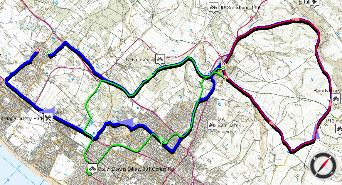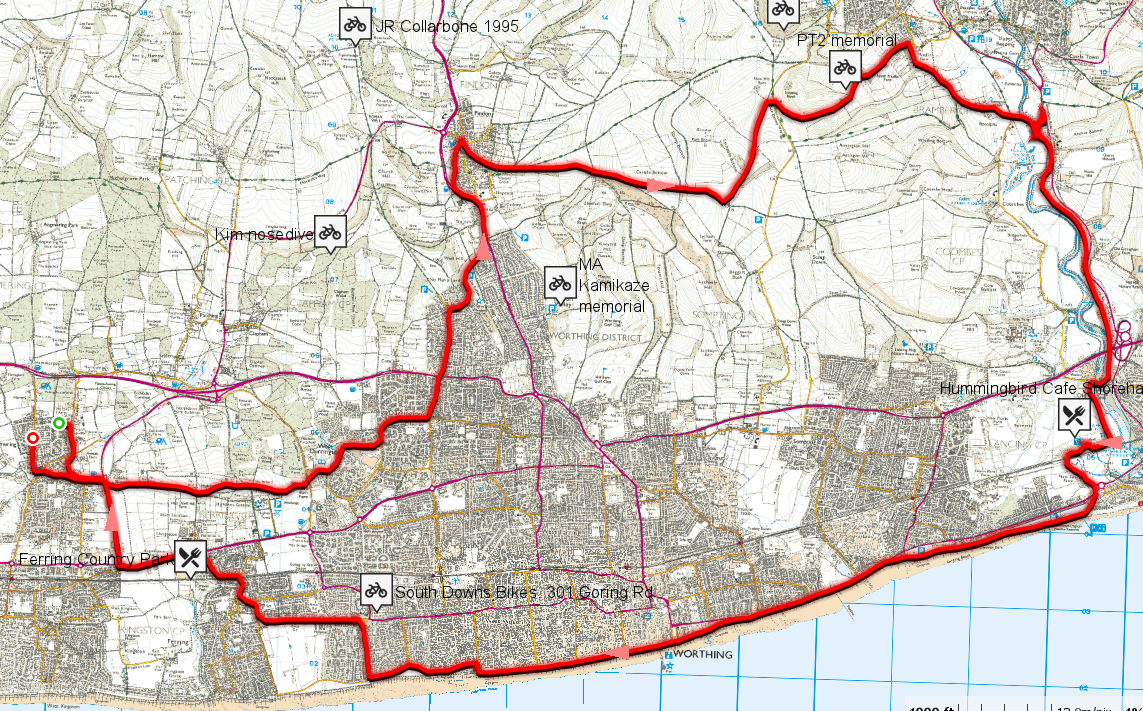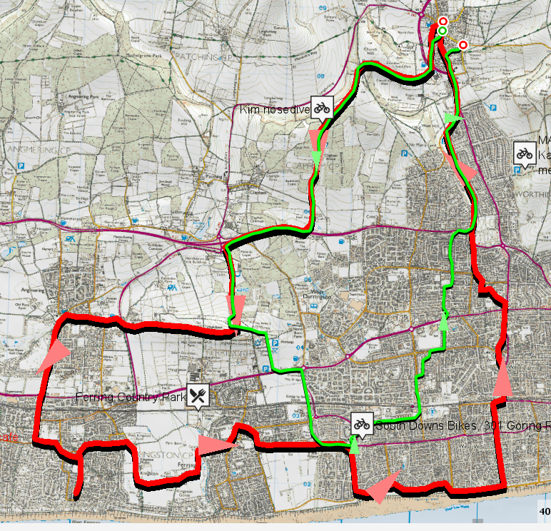Excellent brek, after a shower made us move indoors. Route home was through the Kingston footpath, Ilex way, past the Mulberry, down to the coast then the traditional West Worthing/Tarring/Mill Lane/gallops/Bost Hill/superhighway.