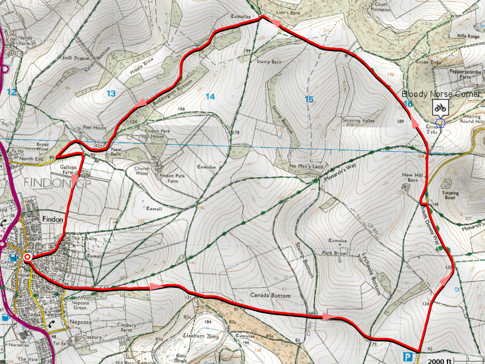 up and over Cissbury to the Steyning road, north to Langmead and back along the SDW to Chanctonbury. Return to Findon via Buddington Bottom, for a light brek at DeeDee’s.