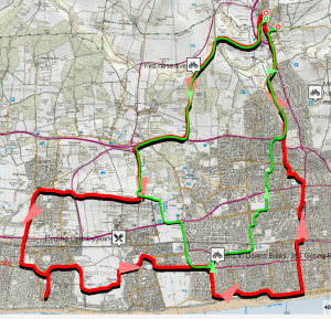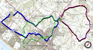Later in the morning, ZA set out to ride to the Mulberry for rugby-watching purposes – his route is shown in green.