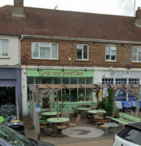 From Highdown we headed west over the footbridge to Angmering and south to John’s mystery brek venue in Rustington. This turned out to be “Grub and Gumption”; neither blue nor on a corner.
