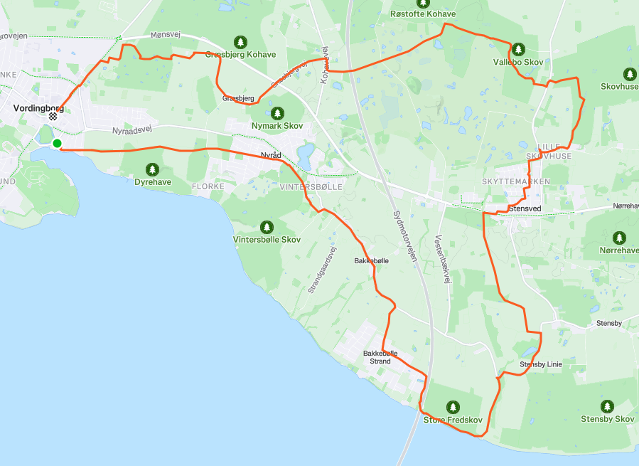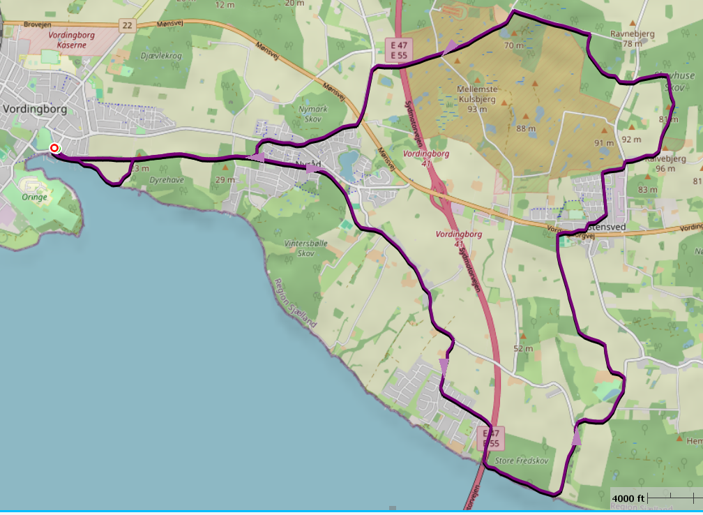 Meanwhile in flatland a starving Dane did an easterly mostly off-road loop from Vordingbord, a total of 18 miles and 723 ft.